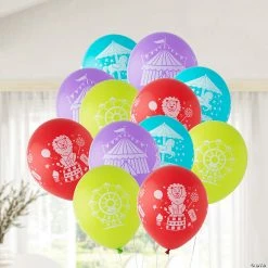 โข BUDGET-FRIENDLY DIY DรCOR These affordable, 5โ helium-grade balloons make a great way to surprise someone special by sneak decorating their classroom, school locker, cubicle, car or any space for a fun moment.โข ADD BALLOON ACCESSORIES: Add visual interest to your party space by creating fun dรฉcor pieces by adding balloon accessories (sold separately on this site) like ribbon, balloon weights, balloon cups, balloon strips for garlands and more to transform them into the ultimate party decoration!โข EASY TO INFLATE: These balloons are easy to inflate with air or helium! We recommend using helium if you plan on adding them to balloon accessories like a weight with ribbon, so it stays afloat!Product Description:Step right up for the best party atmosphere! Grab this bulk set of latex balloons to decorate for a carnival themed event or at a carnival. Featuring exciting pictures of carousels, big top tents and ferris wheels, these balloons add fun to the party decorations. Use in bouquets in the entryway or on food tables or give away as prizes! Size: 11″Quantity: 144Material: Latex