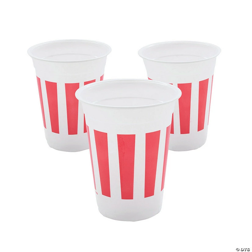 Hot Sale 🛒 Carnival Red & White Stripe Plastic Cups – 50 Pc. 👏