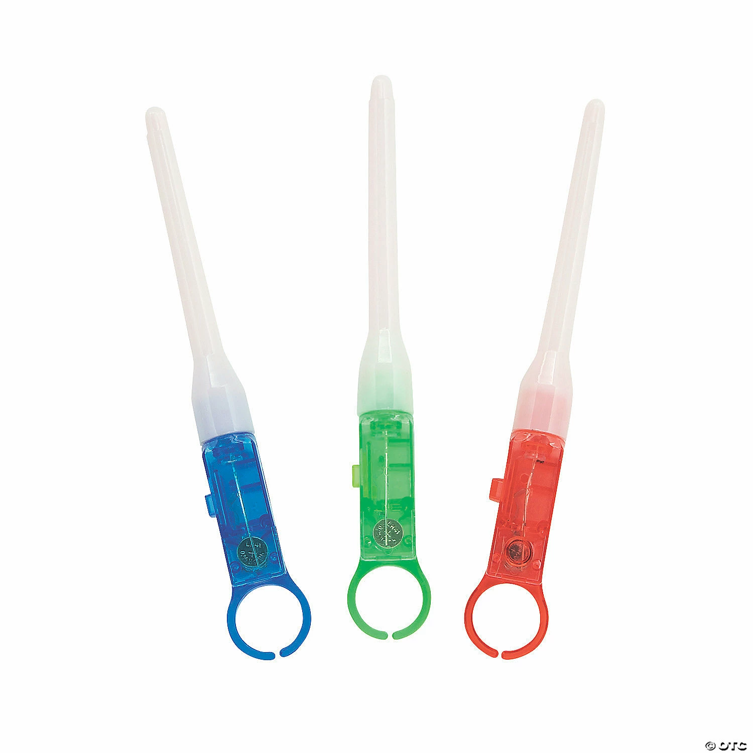 En guarde! These light-up sword rings will delight kids and spark their imagination as they duel invisible foes and more. These rings make great party favors at a pirate-themed birthday party and also work well as classroom rewards or kidsβ giveaways at community events. Kids will love these fun and unusual rings! Plastic. 1″ Includes batteries.