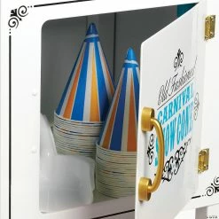 The party never stops with this full-size snow cone cart! Add ice to the shaving cage and turn the unit on, watch as the deluxe shaving system transforms ice into a delicious snow cone. The storage compartment allows for snow cone supplies be organized and ready for serving.LARGE CAPACITY: Holds enough snow for approximately 72 (8 oz.) snow cones, making this perfect for birthday parties and other big events!NOSTALGIA SNOW CONE KITS: Unit works perfectly with all Nostalgia snow cone kits – try the Snow Cone Kit (SCK3), Snow Cone Syrups (SCS160), or the Straws and Cups (SCSTRAWCUP20)DELUXE SHAVING SYSTEM: Stainless steel blades shave 2 pounds of ice in just 90 seconds, allowing you to fill up snow cones quicklySTANDARD ICE CUBES: Fill the shaving cage with regular-sized ice cubes for best results!ULTIMATE STORAGE: Storage compartment in the base allows you to keep supplies organizedSNOW COLD HOLDER: Use the snow cone side shelf as a prepping station to hold 2 snow cones, allowing you to easily add your favorite syrups360Β° VIEWS: The durable tempered glass windows and door is clear from all views, allowing you to watch the snow pile up from any angleDRIP TRAY: The drip tray catches all of the unwanted melted ice, allowing for a messy-free spaceCOUNTERTOP USE: The top separates from the cart so it will fit on a kitchen countertop or a small side table, making it easy to serve snow cones wherever you go!EASY MOBILITY: 13-inch spoked wheels with rubber tires and pull handle allow you to conveniently move the cart to wherever its neededACCESSORIES INCLUDED: Includes a metal scoop so serving snow cones is easy Special Shipping Information: This item ships separately from other items in your order. This item cannot ship to a P.O. Box. This item may be subject to additional processing days. ITEM IS NOT ELIGIBLE FOR EXPEDITED SHIPPING