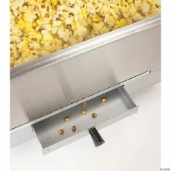 Modeled after the antique popcorn carts of the early 1900s, this beauty features a 10-ounce kettle with built-in stirring system, and pops the most delectable batches of popcorn time and time again. The tempered glass door and windows with lighted interior let everyone view each kernel being popped. Keep supplies on hand in the convenient storage compartment located in the base. If space is an issue the top is removable and becomes a countertop unit. Pops up to 40-cups of popcorn per batch. Perfect for use with all Nostalgia Popcorn Kits! (Theater Hot Air & Kettle Kit-KPK400, PCJ30-Soft shelled Popping Kernels, PPB600-Reusable Popcorn Bowls, PCSP5-Pre-Measured Coconut Oil Popcorn Kit)Easy-to-clean 10-ounce stainless steel kettle with built-in stirring system and dual-hinged lidsTempered glass windows and doorLighted interior for easy viewing and room ambianceTilt door for easy serving accessCompartment in the base to store suppliesKernel catcher tray for unpopped kernels19-inch spoked rubber wheels and pull handle allows for easy mobilityConvenient utility shelf for popcorn preparation Special Shipping Information: This item ships separately from other items in your order. This item cannot ship to a P.O. Box. This item may be subject to additional processing days. ITEM IS NOT ELIGIBLE FOR EXPEDITED SHIPPING