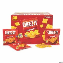 The crunchy baked snack crackers in these Cheez It Original pouches are bursting with real cheese flavor. With 45 1.5-Ounce pouches, you’ll have plenty of Cheez It Crackers to enjoy on-the-go, packed with a lunch, or sitting around the house. Only 150 calories per serving, these Kosher crackers are a healthier snack choice than sugary snacks and junk food chips. Cheez It Original Crackers are a great snack for kids or adults! Edibles are non-returnable. For more information, visit our โReturn Policyโ page located on our website.Special Shipping Information: This item ships separately from other items in your order. This item cannot ship to a P.O. Box. This item may be subject to additional processing days. ITEM IS NOT ELIGIBLE FOR EXPEDITED SHIPPING